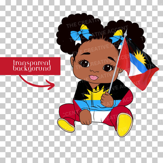 Antigua and Barbuda Little Girl Clipart, 2 PNG Files, Caribbean Island Antiguan Baby
