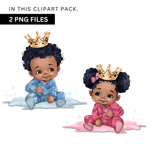 Army Baby Shower Clipart, 2 PNG Files, Little Boy and Girl in Light Blue and Pink Camo, Crown, Black Military Camouflage Gender Reveal Twins