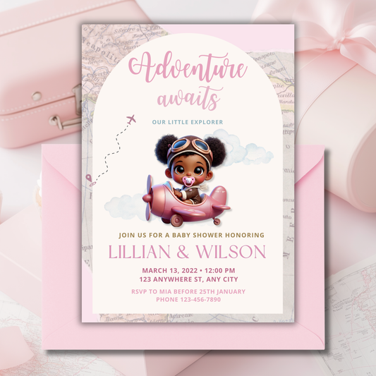 Adventure Baby Shower For Black Girl Invitation Canva Template for Black Babies, Edit in Canva, 5x7 - TCPT-010