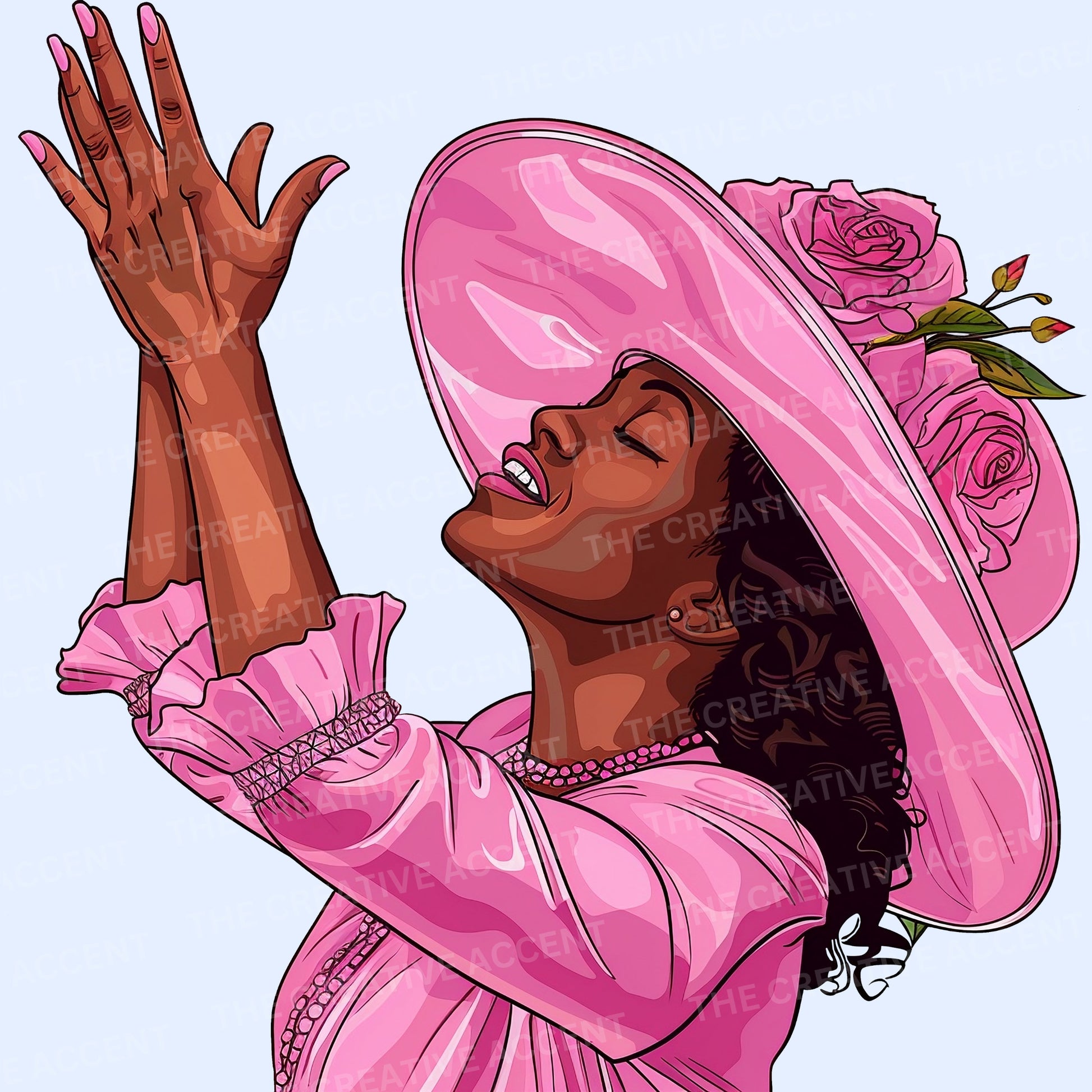 Church Woman Praising Clipart, 13 PNG, Black Church Girl in Praise Prayer, Religious Sisters praying, flower hat, faith lord, Gospel Singer