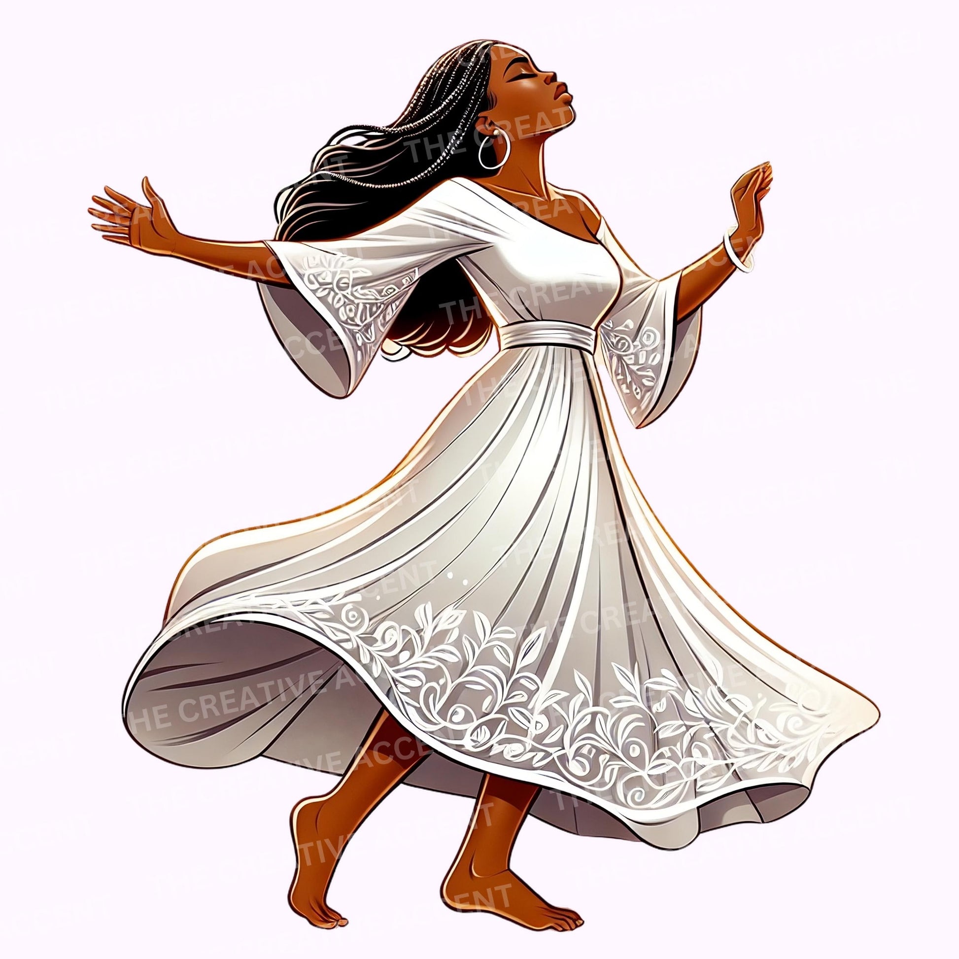 Praise Dancer Clipart, 6 PNG, Black Women Gospel Dress Dancing, Liturgical Dance Show, Church Performance, Worship Flyer, Faith art, Praying