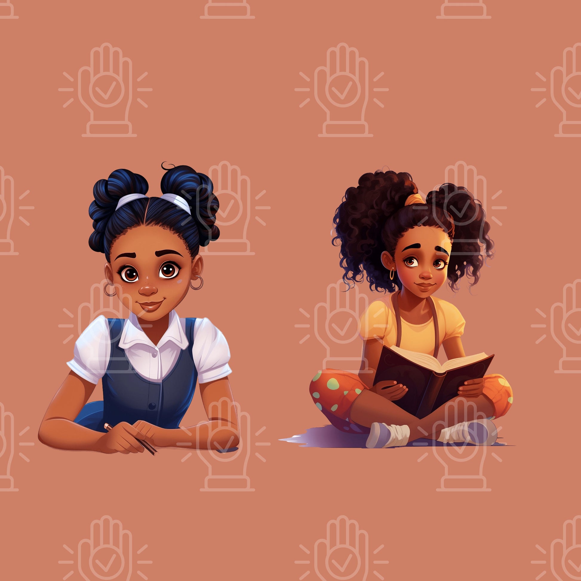 Smart Black Girl Clipart, Study Girls 20 PNG bundle, Reading, Book Bag, School, Writing, Bi-racial clipart, natural, Mixed African-American